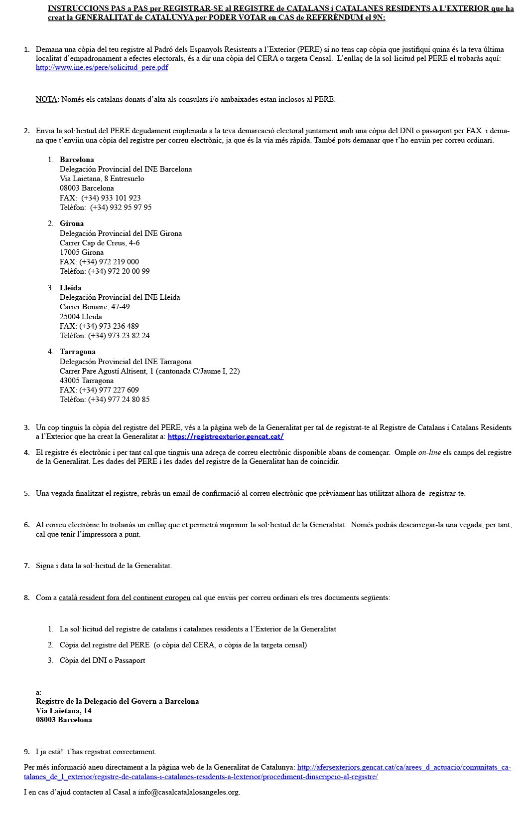 Els que us vulgueu registrar al Registre de Catalans a l’estranger us heu d’espavilar o no hi sereu a temps!!