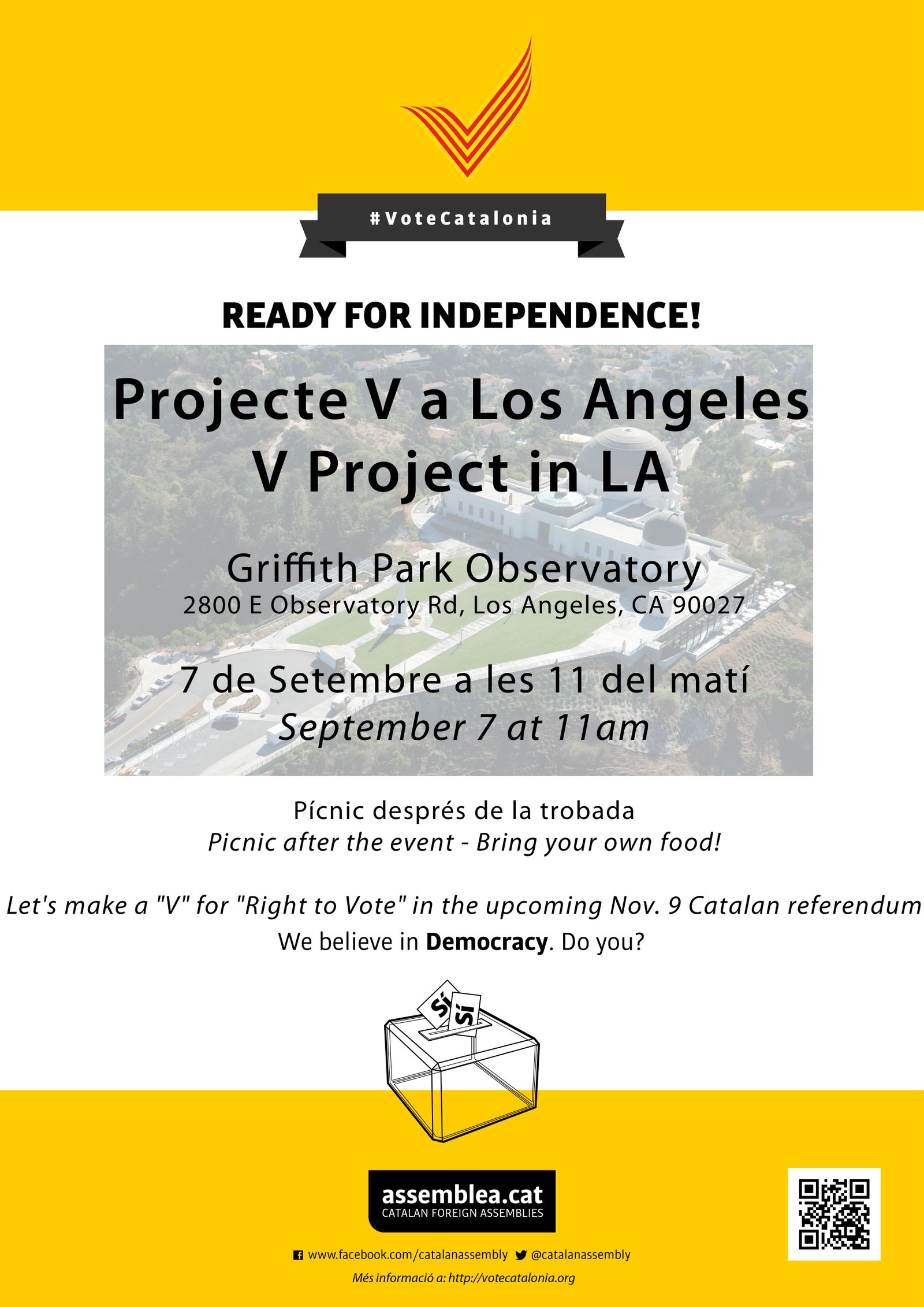 Si teniu intenció de participar al projecte V de Los Angeles que tindrà lloc el dia 7 de Setembre a les 11am al Griffith Park Observatory, us agrairíem que us registréssiu a: